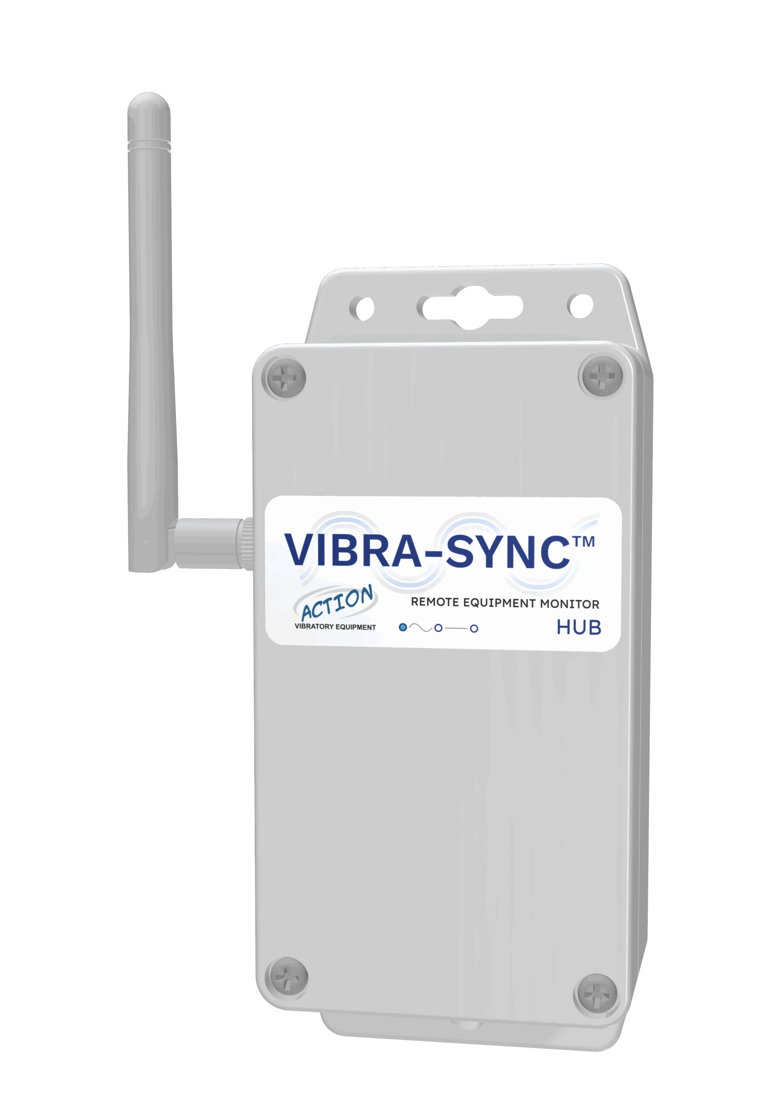 See VIBRA-SYNC™ setup to get started. Often repeating the setup steps will get you running. Please contact ACTION if setup problems persist. The VIBRA-SYNC™ Hub runs on 12 volt direct current. The included power adapter has a center positive barrel plug. When powered on the VIBRA-SYNC™ Hub has a red LED that is lit. The red LED should be on solid. Connecting the hub to Wi-Fi is done with the VIBRA-SYNC™ mobile app. When the hub is connected to Wi-Fi the green LED is lit. If VIBRA-SYNC™ node(s) are connected the blue LED will flash periodically. The VIBRA-SYNC™ Web App must be setup before the sensor data can be logged. Please contact ACTION Vibratory Equipment for help with VIBRA-SYNC™ Web App setup.